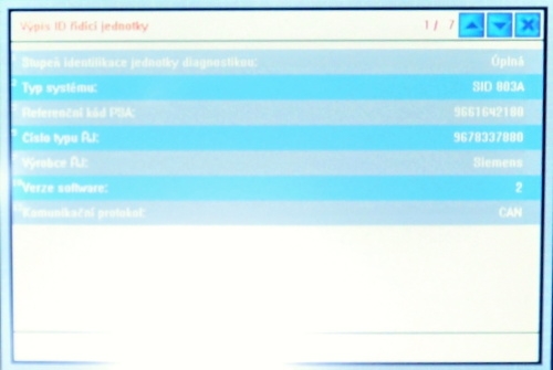 Provedeme Identifikaci ECU a následné vyčtení původního obsahu.