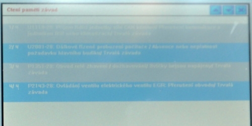 Po úspěšném nahrání souboru a vrácení ECU do vozidla je hned vidět, že po nastartování motoru již svítí i kontrolka motoru (check). Po načtení paměti závad je již jasné, co asi způsobuje problémy.