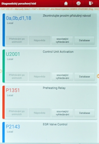 Provedli jsme diagnostiku oběmi zařízeními (TSPro a Launch) a i zde je patrno, že se i zde „objevily“ další dvě chyby EGR ventilu. Následně jsme předali vozidlo autoservisu, které nám auto dovezl.