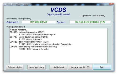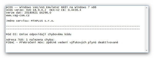 Provedena diagnostika vozidla pomocí VCDS.