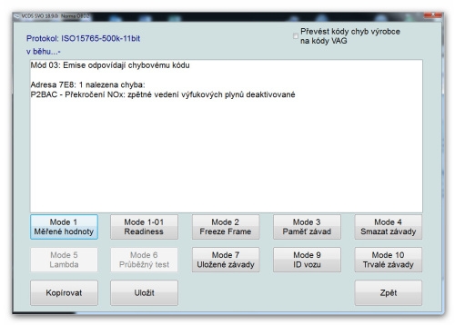 Zajímavostí je, že vozidlo má také chybu v OBD2 normě.
