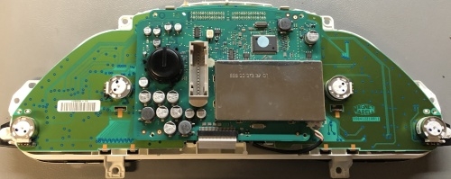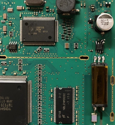Zde uvedeme dva příklady, se kterými k nám přijeli zákazníci v jeden den po sobě. Obecně to vystihuje časté problémy s těmito přístrojovými deskami. První zákazník přijel s tím, že mu na vozidle už nějakou dobu nefunguje podsvícení displeje maxi-dotu. Přesně podle fotoreportáže vysvětlíme, proč podsvícení nefunguje. Na snímcích je patrno, co se stalo na desce plošných spojů.