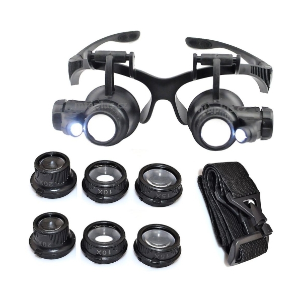 Zvětšovací brýle s vestavěným LED osvětlením vhodné při práci s drobnými předměty. Hlavní předností je široké uplatnění, jak na profesionální tak i amatérské úrovni, jako například při pájení SMD součástek, kontrolách pájených obvodů, hodinářství, domací kutilství apod.